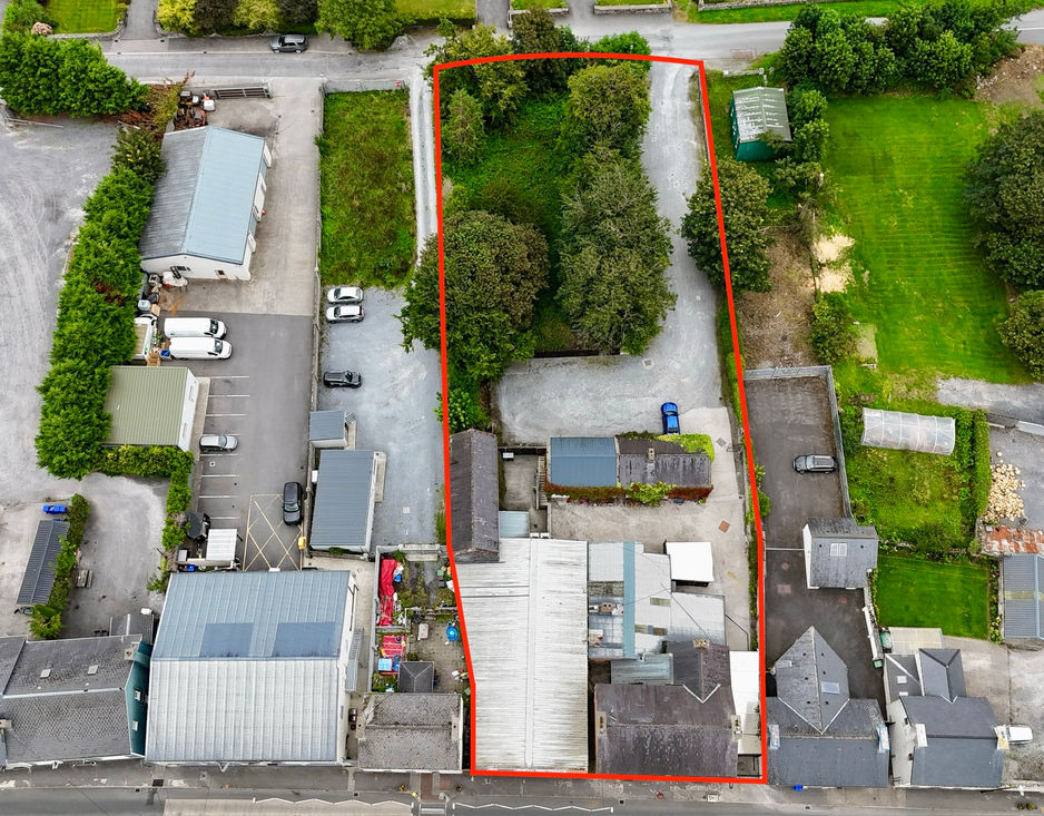 Adjoining the main premises is a 1,532.44 sq. ft. commercial building currently let under a lease, generating immediate rental income. To the rear, the property includes a number of stone-built outbuildings, a large gravel car park, and an adjoining garden, all offering clear redevelopment potential.